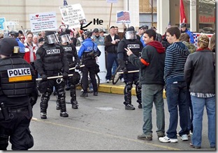 Second, we did not come to “denounce them” (that we did for fun) we came to protect the recruiting center from them!
